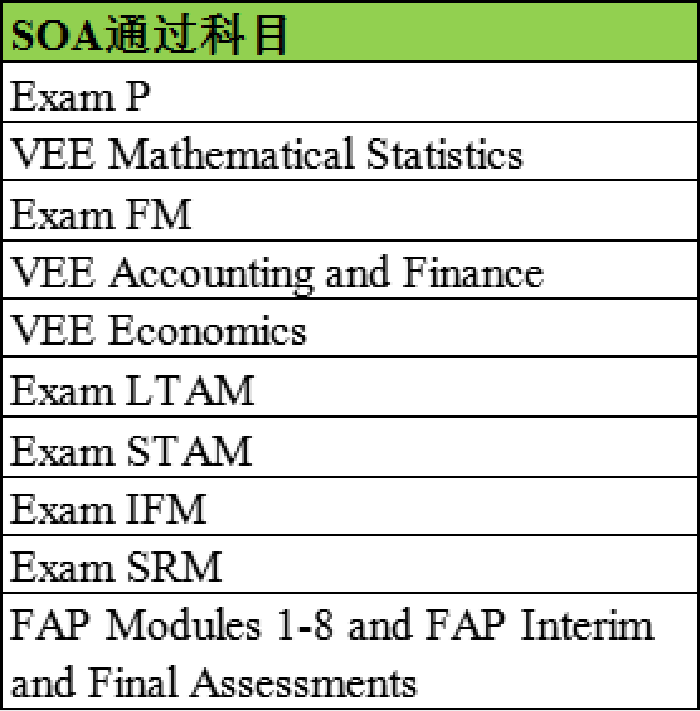 东南大学数学学位擅长课程:SOA的P/FM/STAM/SRM/IFM/LTAM/PA